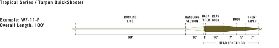 RIO’s Tarpon QuickShooter lines have been specifically designed for tarpon and other tropical species. Every line features a powerful front taper that casts large flies, or punches into tough winds with ease. The short head is heavier than standard tarpon lines, making it easy to load and cast. Welded loops on both ends of the line allow anglers to rig easily.